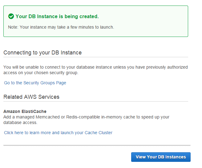 Utworzyliśmy właśnie naszą bazę danych. Teraz musimy poczekać ok. 15 minut zanim się uruchomi. W międzyczasie skonfigurujemy prawa dostepu do naszej bazy danych.