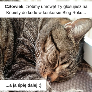 W tym tygodniu mamy do Ciebie małą prośbę — bierzemy udział w konkursie na blog roku. Aby dostać się do finału, potrzebujemy Twojego głosu — można go oddać wysyłając SMS o treści E11382 na numer 7124. Cały dochód przeznaczony jest na fundację Dziecięca Fantazja. Głosować można do południa, 1 marca (wtorek). Wszystkim tym, którzy oddali już na nas głos serdecznie dziękujemy, a pozostałych zachęcamy do wsparcia nas w ten sposób :)