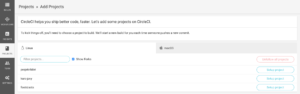 Widzimy tutaj listę organizacji, do których należymy. Najczęściej będzie to tylko jedna pozycja — Twoja nazwa użytkownika. W naszym przypadku mamy zarówno nazwę użytkownika (kobietydokodu) jak i organizację (kobietydokodupl). Przy opcji, która nas interesuje wybieramy ‘Add projects’ (jeśli później będziesz chciała skonfigurować dodatkowe repozytoria oczywiście jest to możliwe). Powinnaś zobaczyć listę dostępnych repozytoriów: