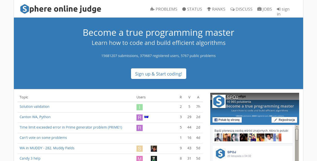 Na stronie znajdziecie wyzwania, które są też ofertami pracy bądź/i konkursami z nagrodami. Ale na stronie można znaleźć też zadania dla początkujących!